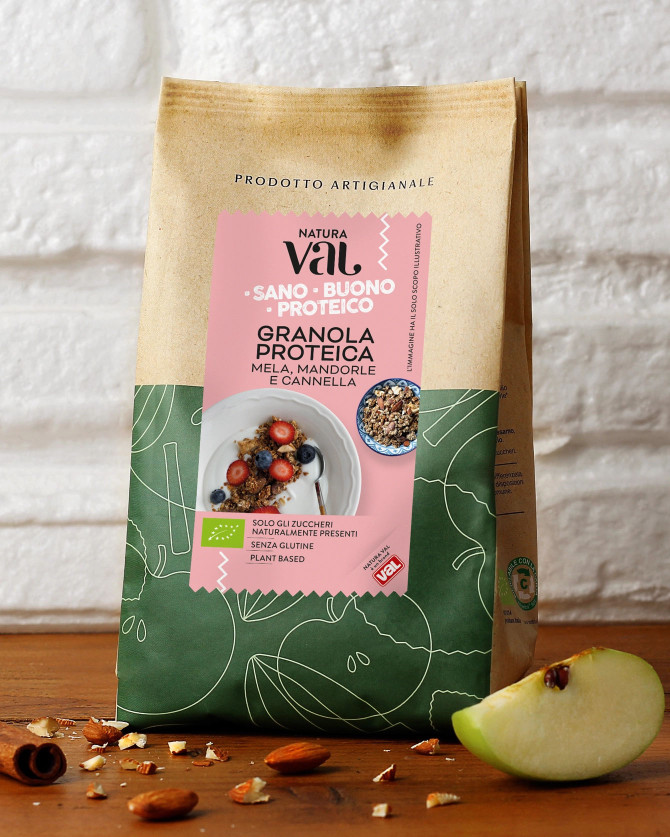 La Granola croccante Val è perfetta per la prima colazione proteica o come snack, per dare energia alle tue giornate con gusto. È buonissima anche da sgranocchiare per una pausa naturale, sana e gustosa, oppure puoi usarla per preparare una bowl e altre golose ricette!