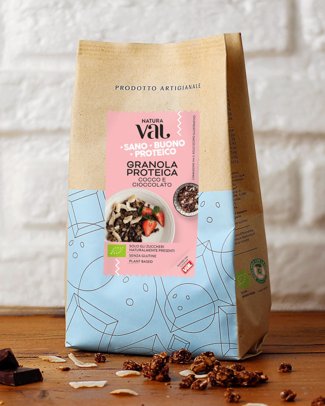 La Granola croccante Val è perfetta per la prima colazione proteica o come snack, per dare energia alle tue giornate con gusto. È buonissima anche da sgranocchiare per una pausa naturale, sana e gustosa, oppure puoi usarla per preparare una bowl e altre golose ricette!